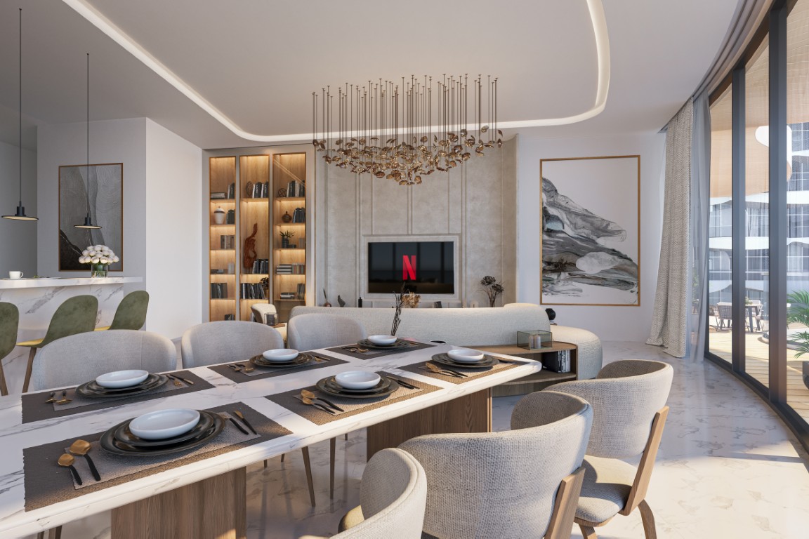 The fully furnished residences boast luxurious amenities like double-height lobbies and private pools, creating a sanctuary in Al Marjan Island, Ras Al Khaimah, where coastal tranquility meets modern luxury, Aqua Arc redefines opulent living with its unparalleled blend of serene surroundings and vibrant urban energy, making it a coveted destination for those seeking refined luxury and sophistication.
