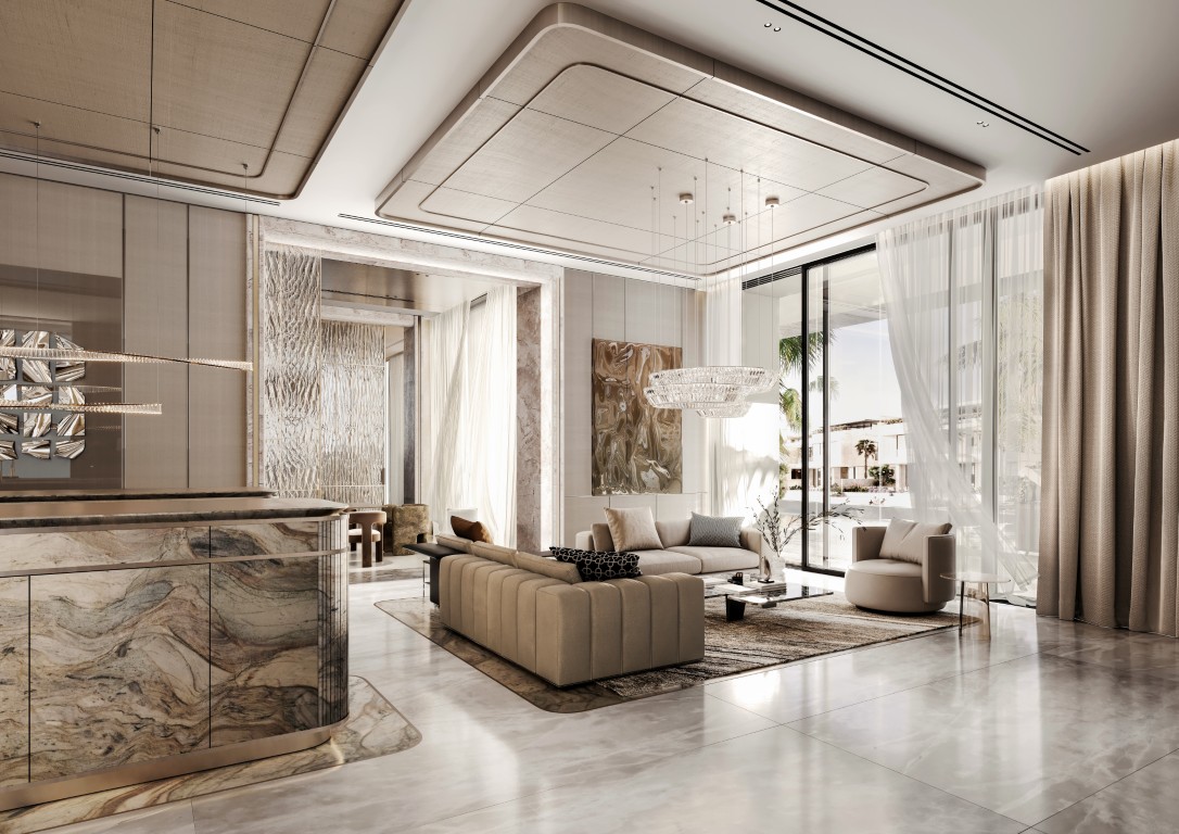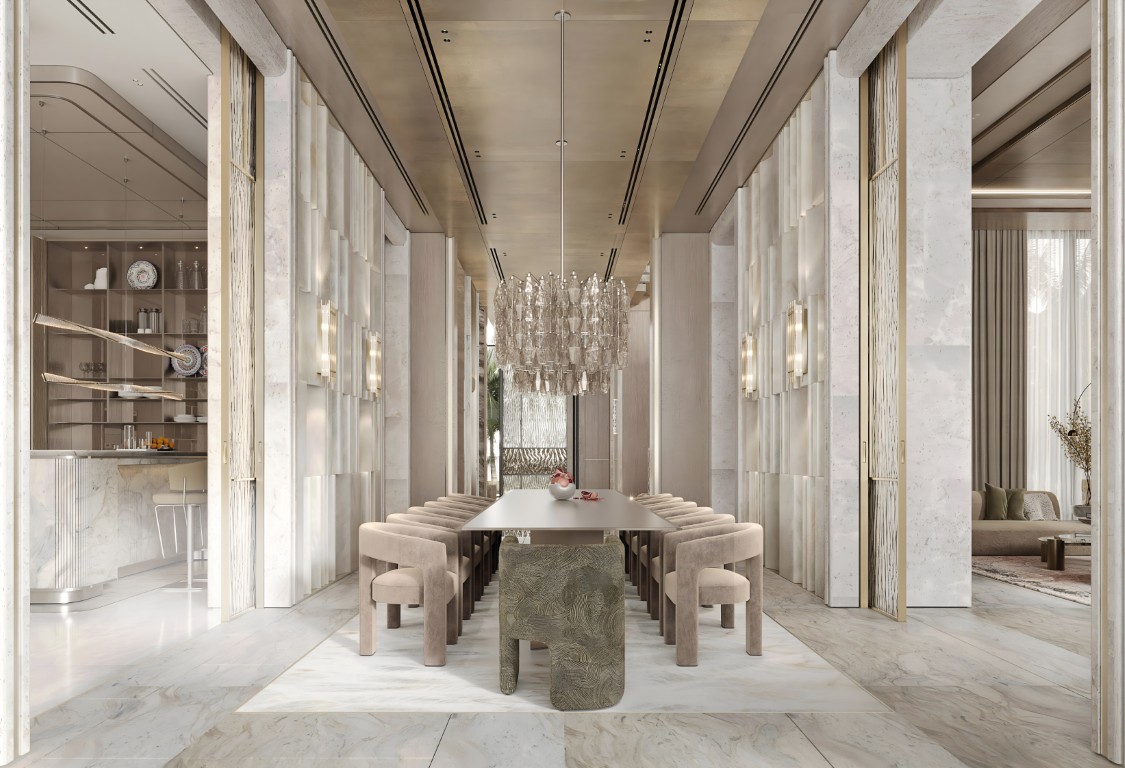 Spanning four thoughtfully crafted floors, these mansions are positioned in a continuous band along the outer perimeter, with the lagoon on one side, granting prime access to surrounding greenery and an abundance of privacy and scenic views. A marvelous fusion of water, light, and gems – they embody grand living while inclining toward the architectural ethos and design language of the modern era.
