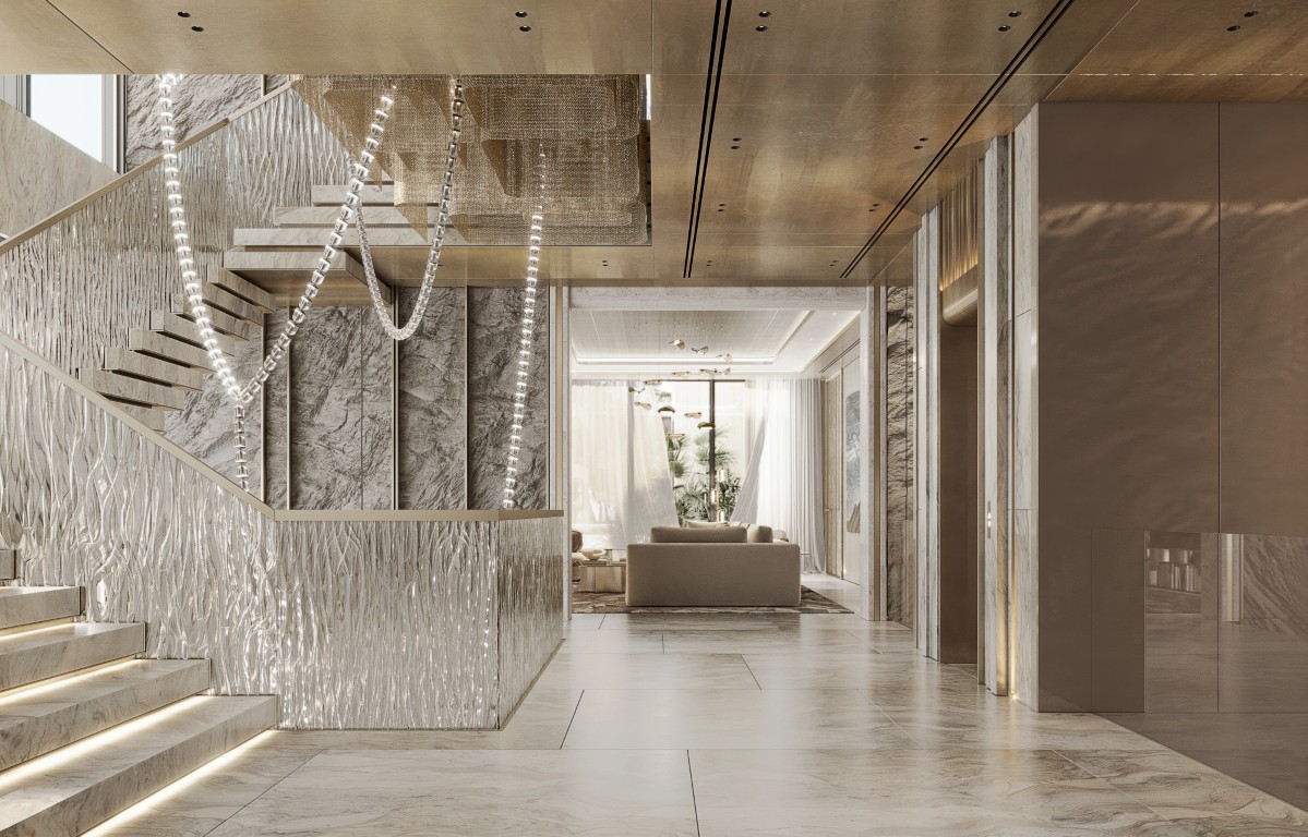 - Grand interiors with sculptural staircases, chandeliers, and designer furnishing