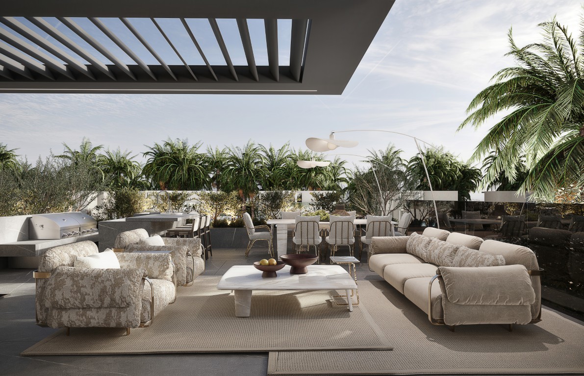 - A rooftop terrace with seating areas and al fresco dining