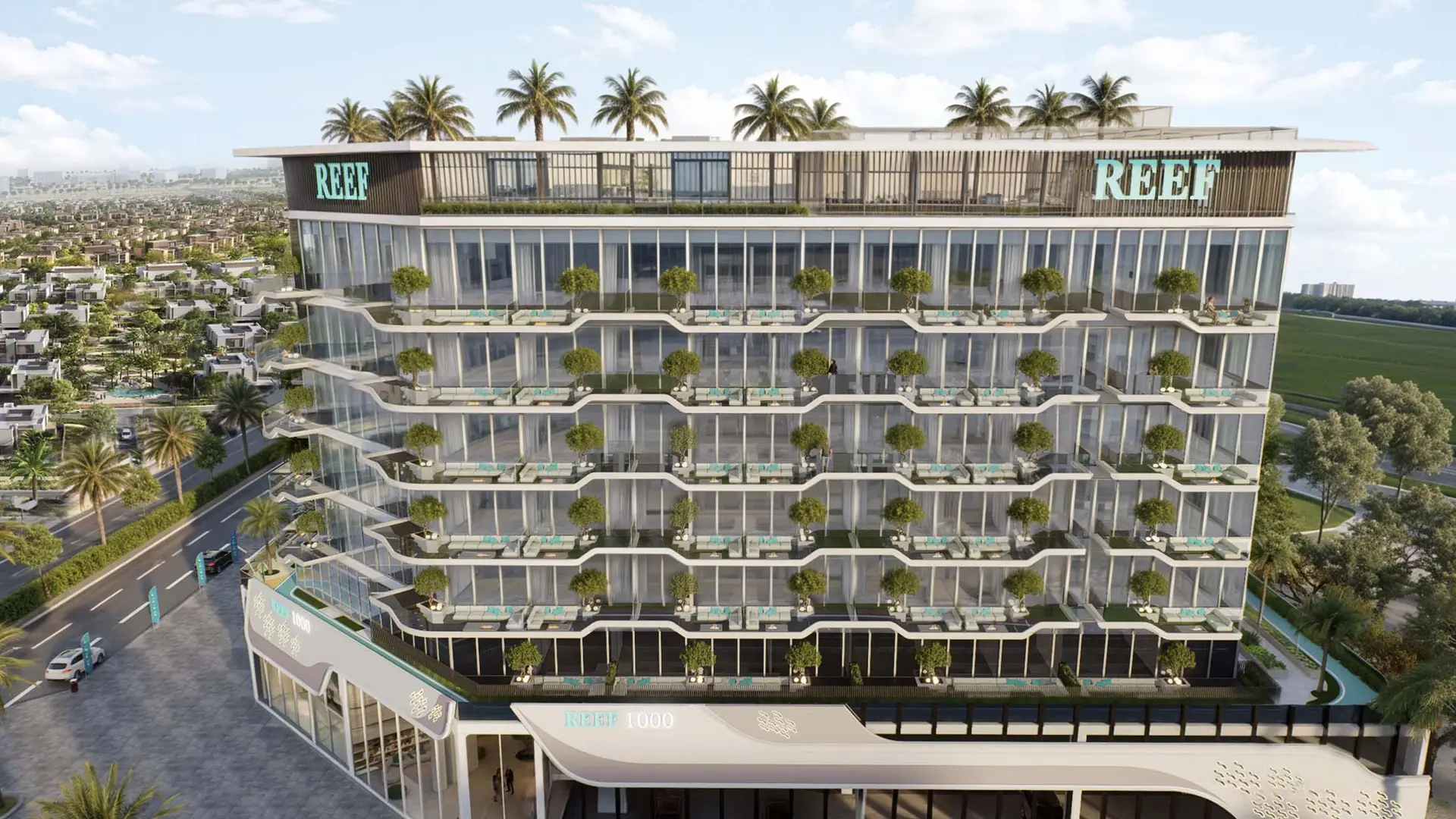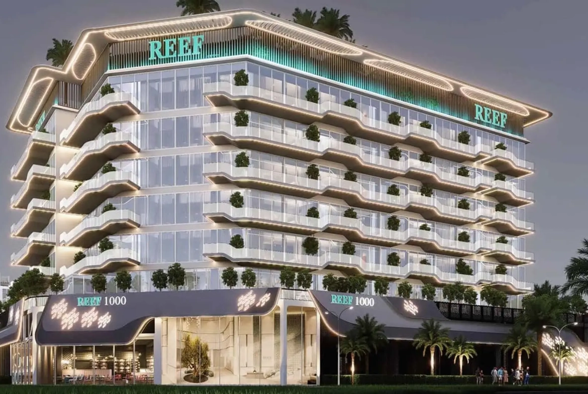 REEF 1000 by Reef luxury is a new premium residential complex located in the Dubai Land Residential Complex (DLRC). The projects include studios, 1-and 2-bedroom apartments, as well as a limited number of luxury 2-bedroom townhouses. The building consists of 6 residential floors with a podium and basement level. The apartments feature modern finishes using high-quality materials. Sizes ranges from 437 to 1904sqft with prices from 620,000 to 2,300,000AED. REEF 1000 stands out with a wide range of internal amenities, including the unique “Sunken Garden” concept and various areas for active recreation and relaxation. The project is conveniently located in the heart of Dubai land, providing easy access to key infrastructure facilities, shopping, and entertainment centers.